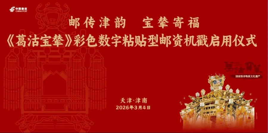 新春时节,国家级非物质文化遗产——葛沽宝辇会即将精彩亮相。为传承中华优秀传统文化,让市民近距离感受非遗魅力,天津邮政将于3月4日(正月十六)在葛沽文化市集,举办《葛沽宝辇》彩色数字粘贴型邮资机戳启用仪式,诚邀广大市民赏民俗、寄祝福,共赴这场独具津门特色的民俗盛会。