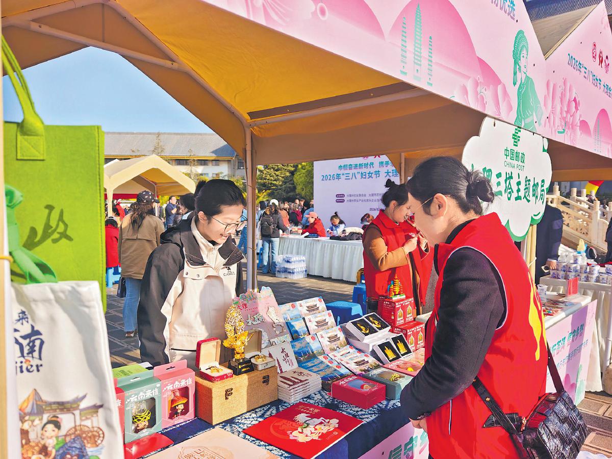 活动现场,主题邮局展台前人气满满,独具特色的三塔系列特色明信片、大鹏金翅鸟非遗文创等邮品吸引了众多客户驻足观赏、挑选购买;同时,现场还提供纪念戳加盖、明信片手写寄递等“一站式”服务,让大家既能挑选心仪邮品,又能沉浸式体验邮政文化,成为集市中一道温馨而独特的风景。