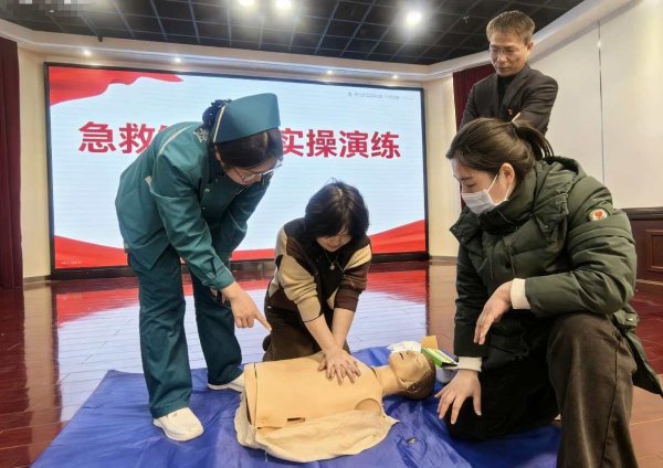 急救实操演练活动以“理论+实操”的形式进行。在理论讲解环节,来自新乡市第一人民医院(河南医药大学附属人民医院)急诊科专家结合真实案例,深入浅出地讲解了心搏骤停、气道异物梗阻等常见急症的识别要点与急救原则,重点强调了“黄金4分钟”的重要性,让大家对急救有了更深刻的认知。在实操演练环节,医护人员现场演示了心肺复苏(CPR)的标准流程,包括胸外按压的深度、频率、姿势,以及人工呼吸的操作要点。随后,在医护人员的一对一指导下,在场女职工依次使用模拟人进行实操练习,大家认真学习、反复演练,快速掌握了心肺复苏的核心技巧。