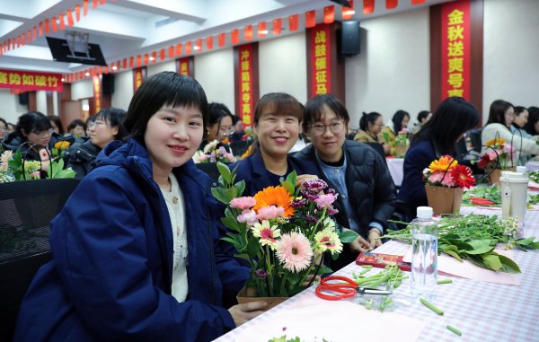 随后,在花艺老师的专业指导下,大家认真学习选枝、修剪、搭配、造型,将玫瑰、康乃馨、洋桔梗等鲜材巧妙组合,在指尖勾勒出层次丰富、意境优美的花艺作品,在动手创作中感受自然之美、陶冶艺术情操。活动现场暖意融融、花香四溢,大家相互交流、互相学习,分享着插花过程中的乐趣和心得,欢声笑语回荡在整个活动现场。