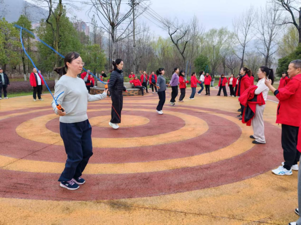 紧接着,跳绳比赛在轻松愉快的氛围中开始。轻盈的跳绳在选手们手中快速飞舞,她们身姿矫健、动作敏捷,双脚在地面轻快跳跃,展现出极佳的协调性与耐力。大家相互打气,赛出了风格,也赛出了友谊。