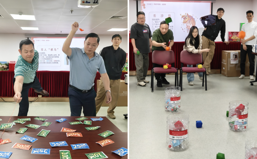 活动现场精心设置了投沙包、飞镖、套圈圈、夹玻璃珠、跳跳球五大互动游戏区域,其中投沙包区是最具“童年回忆”的游戏点。大家站在指定线外,手持沙包、屏气凝神,发力投掷间,沙包在空中划出一道道优美弧线,每当精准命中靶心,现场便响起阵阵欢呼。这个简单而有趣的游戏,瞬间拉近了同事间的距离,让大家在欢声笑语中重拾童年乐趣、舒缓工作压力。