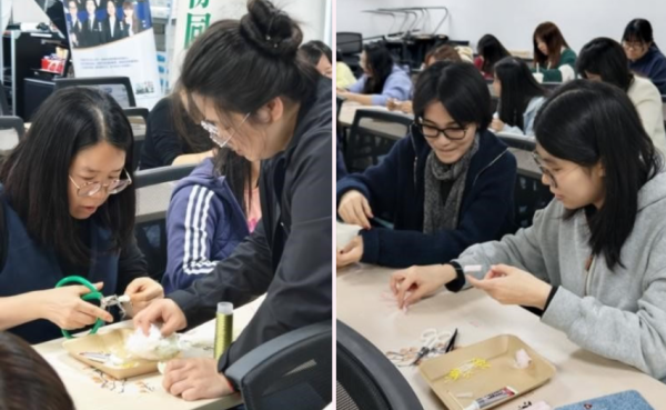 中心工会特邀专业手工艺老师,带大家体验非物质文化遗产绒花发簪制作。绒花谐音“荣华”,其起源可追溯至唐代,甚至更早的秦汉时期,是民俗的吉祥符号,寓意荣华富贵、吉祥如意。活动现场,老师讲解绒花的历史渊源、文化内涵及制作工艺,从选料、染色到勾条、打尖、传花,每道工序都凝聚匠心。