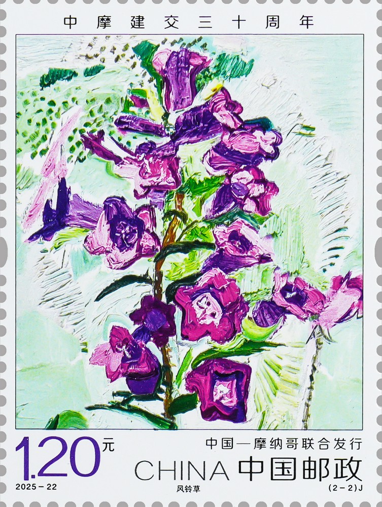 Since China and Monaco established diplomatic relations, their bilateral relations have developed steadily. Both countries have maintained mutual respect, treating each other as equals. They have set an example of friendly coexistence and of shared development between countries with different sizes, cultures, histories and social systems. The two stamps respectively feature flowers with distinctive national characteristics and profound cultural implications for both countries. China has chosen cymbidium (orchid) which have a long history of cultivation in the country, while Monaco has selected campanula medium (bellflower) that is elegant and lively. These two types of flowers embody the innate value and spiritual pursuit of ecological civilization. The stamps convey a profound message of everlasting friendship, reflecting the shared aspirations to promote greater progress in bilateral ties and deliver more benefits to the people of both countries. This set of stamps is printed using high-precision offset printing technology, together with special scented inks. The orchid-scented ink emits a delicate and fresh fragrance, while the bellflower-scented ink gives off a sweet and gentle floral aroma. Such ink not only enhances the sensory experience of the stamps but also increases their collectable value and commemorative significance. Meanwhile, the fluorescent effects under ultraviolet light add anti-counterfeiting properties and visual appeal to the stamps. The set of stamps is designed by Yan Ping, edited by Li Jinwei, and printed with offset technology (using different scented inks) by Beijing Stamp Printing House Company Limited. This set of stamps will be available for six months at designated postal outlets nationwide, online mall of China Philately (https://jiyou.11185.cn), the mobile app of China Post, the WeChat Mall for philatelic products in the official WeChat account and the WeChat mini program of China Post Group. To present more information about the stamps, China Post will release the digital content through the WeChat mini program “Encyclopedia of China Philately and Stamps”, where philatelists can learn more about the stamps via its AR function. |