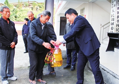 近日,邮储银行湖北省咸宁市分行机关党支部党员来到扶贫驻点村——通山县大畈镇和平村,开展“精准脱贫携手同行”主题党日活动。活动中,咸宁市分行机关党支部党员与和平村党员代表一起学习了《中国共产党章程》《习近平谈治国理政(第二卷)》《中国共产党纪律处分条例》;然后,慰问了村里的贫困户和老党员,为他们送去了食用油、大米等生活日用品。据了解,自今年驻点帮扶以来,咸宁市分行党委先后筹集10万元帮扶资金,帮助和平村修建水塔、文化广场,解决当地群众吃水难、无休闲场地等难题。□王蜜蜜 陈琼 摄影报道