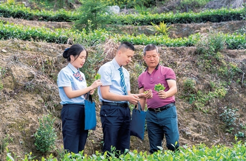 邮储银行福建省漳州市分行客户经理来到茶园,了解春茶种植情况。□许芙蓉 摄影报道 |