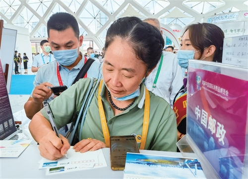由商务部和海南省人民政府主办的首届中国国际消费品博览会日前在海口举行。在消博会期间,海南省邮政分公司与浙江物产中大云商有限公司举办战略合作签约仪式,双方将共同探索推进跨境电商与岛内免税经营运行的高质量发展新模式,打造海南电商合作生态圈。同时,海南邮政在现场提供免费领取纪念封、盖戳、邮寄以及海南特色集邮文化产品展销、邮件寄递等服务。参展工作人员、观展的市民纷纷在纪念封及海南特色明信片上留下美好寄语,邮寄给亲朋好友。□本报记者 黄文燕 通讯员 陈敏 摄影报道