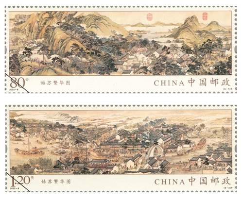 本报讯(记者 潘琛)5月18日,《姑苏繁华图》特种邮票发行。 当天,邮票首发活动分别在江苏苏州山塘街景区阊门寻根地和木渎举行。活动同步在“中国集邮邮票百科”小程序上开展线上直播,线上线下同步发售《姑苏繁华图》版票册、《华夏丹青姑苏繁华》纪念邮册、首日封、纪念封等产品,并启用阊门、万年桥、木渎古镇等六枚彩色邮资机宣传戳,配套首发纪念戳、姑苏六景文化戳等。 《姑苏繁华图》原名《盛世滋生图》,是由清代宫廷画家徐扬所绘,完成于乾隆二十四年(1759年)。该幅画作以长卷形式和散点透视技法,描绘了盛清时期苏州“商贾辐辏,百货骈阗”的市井风情。 《姑苏繁华图》特种邮票一套6枚,按照《姑苏繁华图》画卷中景点的路线与所绘内容,重点表现了灵岩山、木渎镇、狮何二山、万年桥、阊门、虎丘6段画面内容。 该套邮票由邢文伟设计,由河南省邮电科技有限公司采用六色胶印工艺印制,于方寸之间还原了原画长卷的古朴韵味。 |