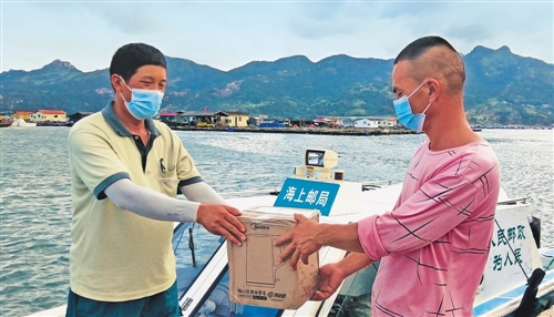 □孙雅晗 童懿娟 文/图 在福建省宁德市蕉城区三都澳海域,有一片上万亩的养殖区。海面上的渔排形似良田,养殖户们在这里辛勤“耕耘”着。远处,一艘标有“中国邮政”字样的快艇驶来,渔排上的渔民们兴高采烈地跑过来,热情地向投递员招手…… 这是三都澳海上邮路常见的一幕。三都澳位于福建省宁德市东南部,20世纪80年代末至90年代初,这片海域兴起网箱养殖,渔民长期生活在海上,随之涌现一批海上社区。宁德市邮政分公司克服重重困难,开辟了福建省内唯一的海上投递邮路。三都澳海上邮路以三都邮政支局为起点,至城澳邮储网点。通过这条海上邮路,渔业养殖户、渔民和海上社区工作人员都能及时收到报刊和邮件。 上午,投递员从三都海上邮局出发前往三都支局。“每周一、三、五是走海路的,在星期三的时候会前往偏远地区,像鸡公山村和白匏村。”三都澳海上邮路唯一的投递员石进全一边分拣着邮件一边介绍。吃过午饭后,石进全取走邮件,开着三轮车将包裹送到停靠在码头边的快艇邮船上,再驾驶着满载邮件的快艇邮船,穿梭于三都澳各个小岛与渔排之间。 由于渔民居住分散,并且常常外出作业,有时一份邮件要投递好多次。“大家在海上工作,但是还是会写家里的地址,了解情况的,就会把邮件带到渔排上给他们。”石进全说。 随着海上养殖业的快速发展,渔排小屋陆续改造,面积也越来越大。在茫茫大海上,石进全依靠自身经验和方向感,准确找到渔排上的小屋,将包裹送到渔民手中。有些村子在海岛的山上,石进全就下船步行送达。当石进全完成一天忙碌的投递工作时,落日的余晖正好洒落在海面上…… 从普通的小木船到快艇,从盼望收到书信到网购日常用品,从一望无际的海面到渔排错落的养殖区,从传统方式售卖到线上线下多渠道销售,三都澳海上邮路见证了海上居民生活的变化和发展。现在,三都支局正积极服务乡村振兴战略,以“助农惠农”为根本任务,联合共建单位创新叠加各项业务,逐步完善海上邮路普遍服务。同时,积极搭建惠农平台,发挥邮政“四流合一”优势,通过“线上+线下”模式助力海产品销售,开展海上直播带货活动,形成整体协同发展效应,努力走出一条颇具特色的海上振兴之路。