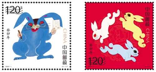 中国邮政自1980年发行名为《庚申年》的中国首枚生肖“猴票”以来,连续多年发行生肖邮票,以12年为一轮,目前进入了第四轮发行周期。 9月8日,作为第四轮生肖“兔票”的《癸卯年》特种邮票图稿发布,相信看过的朋友都会有耳目一新的感觉。邮票一套两枚,第一枚名为“癸卯寄福”,用别出心裁的蓝色描绘了一只右手执笔、左手持信的睿智卯兔;第二枚名为“同圆共生”,描绘了三只兔子首尾相接、奔腾不息的场景。 生肖,也叫属相,是代表十二地支而用来记人的出生年的十二种动物。从这个概念诞生以来的上千年,中国围绕着生肖动物产生了诸多文化现象、民间风俗。生肖成为我国悠久的民俗文化符号。 中国邮政发行的四轮生肖邮票,除了方寸间惟妙惟肖的动物形象,更体现着生肖动物的象征、寓意,通过生肖反映人民的美好心愿,彰显出时代精神。此次《癸卯年》生肖“兔票”由近百岁的著名艺术家、“猴票之父”黄永玉先生设计,这是他第三次为生肖邮票操刀,宝刀不老的黄永玉再次用他神奇的笔墨,完美地诠释了人们期盼岁月静好的愿望。让我们共同期待这套邮票的面世,迎接来年的平安、健康、幸福。