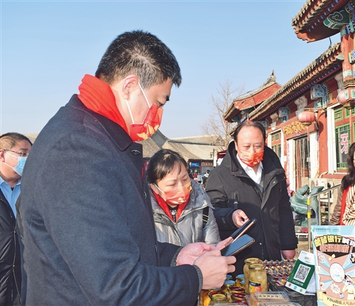 天色刚放亮,北京延庆永宁古城里已是人头攒动。冒着热气的豆腐被一车车推到了街市上,浓浓的豆香味四溢,来到古城游玩的张阿姨忍不住买上一块,还趁着热乎气儿尝了一口。随后,张阿姨拿出手机对着摊位前的邮惠付二维码一扫就完成了支付,不禁感慨道:“在这儿不仅能浏览古城风貌,还能品尝特色美食。每到一处都能使用手机智能点餐、智能结算,方便安全又卫生,体验特别好。”