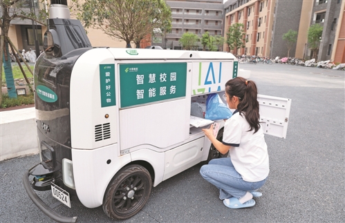 为进一步搭建校园智能邮政服务场景,6月初,四川省内江市东兴区邮政分公司在内江师范学院投放3台智能无人车,结合学生作息时间,确定每日4个投递时段。据悉,一台无人车一趟能够配送快递近50件。它通过指定路线,将快递配送至学生公寓、师生活动中心等便于取件的点位,学生只需在无人车屏幕上输入取件码,即可打开柜门轻松取件。□李丹 冯思怡 摄影报道