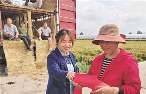 日前,陕西省渭南市华州区下庙邮政支局的工作人员走进田间地头,介绍邮政惠农政策,了解种植户的金融、寄递需求,帮助他们对接销售平台,提供上门收件等寄递服务,得到了村民的一致好评。□袁璟 摄影报道