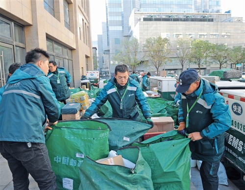 “双11”过后,邮件寄递量迎来高峰。山西省太原市邮政分公司提前做好规划,增加投递作业频次,所有揽投人员加班加点,确保在最短的时间内将邮件投递到户。“双11”期间,太原市分公司日均投递量约为30万件。图为解放路揽投部揽投员在出班前进行分拣、封发、排序等内部作业。□王蕴伟 摄影报道