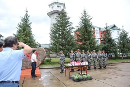 7月22日,冒着小雨,黑龙江省邮政分公司与《半月选读》杂志社相关人员来到中国最北的边防某部北极哨所,看望和慰问戍边部队官兵,并带来《半月选读》杂志、降暑水果等,在八一建军节即将到来之际送上对部队官兵的感激之情。