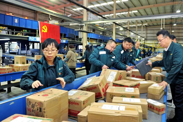 面对一浪高过一浪的邮件洪峰,山西邮政直属机关党委心系一线员工,开展了“助力双十一攻坚战,深入基层慰问帮扶”活动,分多批次组织党员领导干部支援生产一线。装车、摘件、码车……各生产环节都有他们的身影。