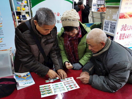 11月29日,中国邮政发行《精准扶贫》纪念邮票,邮票用精致细腻、清新自然的画面描绘了中国共产党领导全国各族人民持续向贫困宣战取得的巨大成就。老邮迷王青松、张庆云和苏振华从小生长在苏北农村,目睹了农村翻天覆地的变化,对此套邮票更是情有独钟。图为三位老邮迷兴致勃勃地欣赏《精准扶贫》邮票。 □谢安吉 摄影报道
