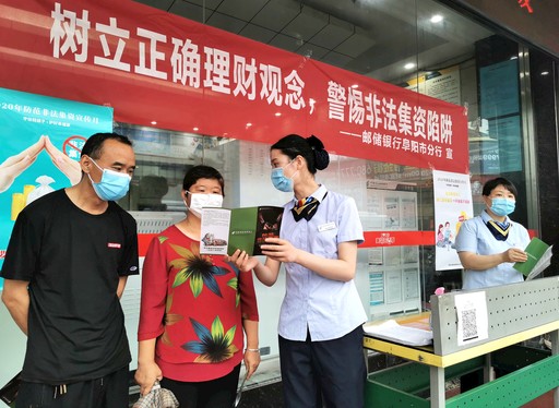 6月15日,邮储银行安徽省阜阳市分行开展“打击防范非法集资宣传”活动。所辖各网点通过在营业场所设立宣传台、拉横幅、发折页等方式,广泛宣传非法集资的特征、手段及防范要点,提示公众警惕风险,理性选择投资渠道,以身边真实的案例,加强案件警示和风险提示。