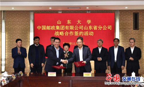 11月25日,中国邮政集团有限公司山东省分公司与山东大学在济南举行战略合作签约仪式。中国邮政集团有限公司山东省分公司党委书记、总经理韩广岳,省分公司副总经理林令才;山东大学党委副书记、校长樊丽明,山东大学常务副校长王琪珑出席仪式。中国邮政集团有限公司山东省分公司市场营销部总经理徐光文、山东大学服务山东办公室主任井海明分别代表双方签署了合作协议。