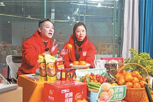 广西邮政在南宁市武鸣区沃柑种植园开展溯源直播活动。
