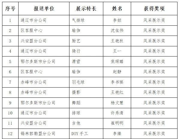 “多彩巾帼”特长展示获奖名单