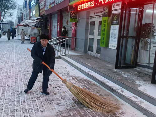 榆社县河南街邮政营业所员工以雪为令,及时清扫网点门前的积雪。张宇婷摄