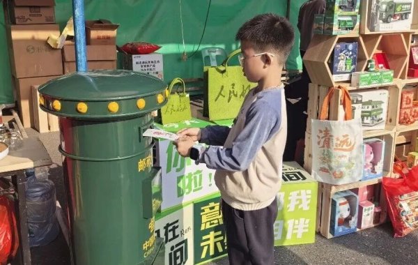 从广州北行至清远,这里的迎春花市也迎来一场邮政的春日约会。现场搭起的“春日邮驿”里,免费派发的主题明信片被市民一笔一划填满,寄往远方的思念随邮筒启程。展台上,以清远地标、乡土风情为灵感的冰箱贴成了人气王,不少人一买好几套,留作纪念或赠予远方的朋友。