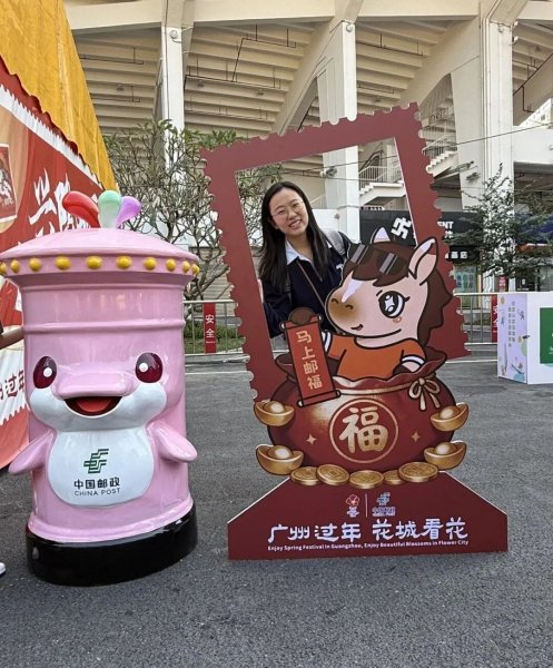 这是全国首个“大湾鸡”主题邮筒。圆滚滚的身材、好奇的眼神,往花市一站,立刻成为全场焦点。市民们在明信片上写下对亲友的牵挂、对新年的期许,投入“大湾鸡”好运邮筒。现场还开展“邮点意思”集章活动,每封信件还可加盖“邮运、邮财、邮康、邮睦、邮缘”五福纪念章,外加万能福章和隐藏款好运章。一戳一愿,信笺成了独一无二的新春幸运符。