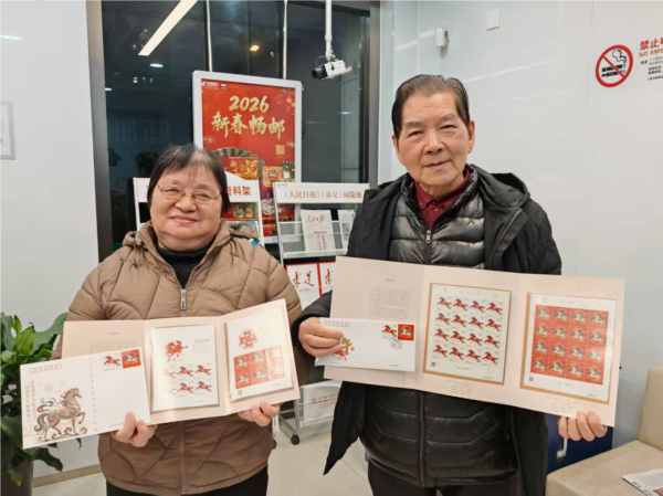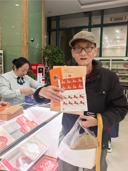 凌晨五点,夜色尚未褪去,位于黄浦区柳林路156号的龙门路邮政支局,营业大厅内早已是人头攒动。不少邮迷带着满心期待提前等候,只为抢先一睹马年生肖邮票的“真容”。“阿拉今朝天不亮就赶过来了,就想第一时间拿到这枚马年邮票!再盖上今天的专属日戳,把‘马到成功’的好彩头送给亲朋好友,祝他们新岁大发、万事顺意!” 面对镜头,邮迷魏老先生难掩兴奋,话语里满是对生肖邮票的钟爱。对这些资深邮迷而言,每年抢购生肖邮票早已不是简单的收藏行为,更成了刻在骨子里的年俗与惯性。小小一枚邮票,承载的不仅是对“方寸天地藏乾坤”的痴迷,更是老友们一年一度久别重逢的约定——借着集邮的契机,聊聊过往、话话新春,让这份跨越岁月的爱好,成为联结情谊的温暖纽带。