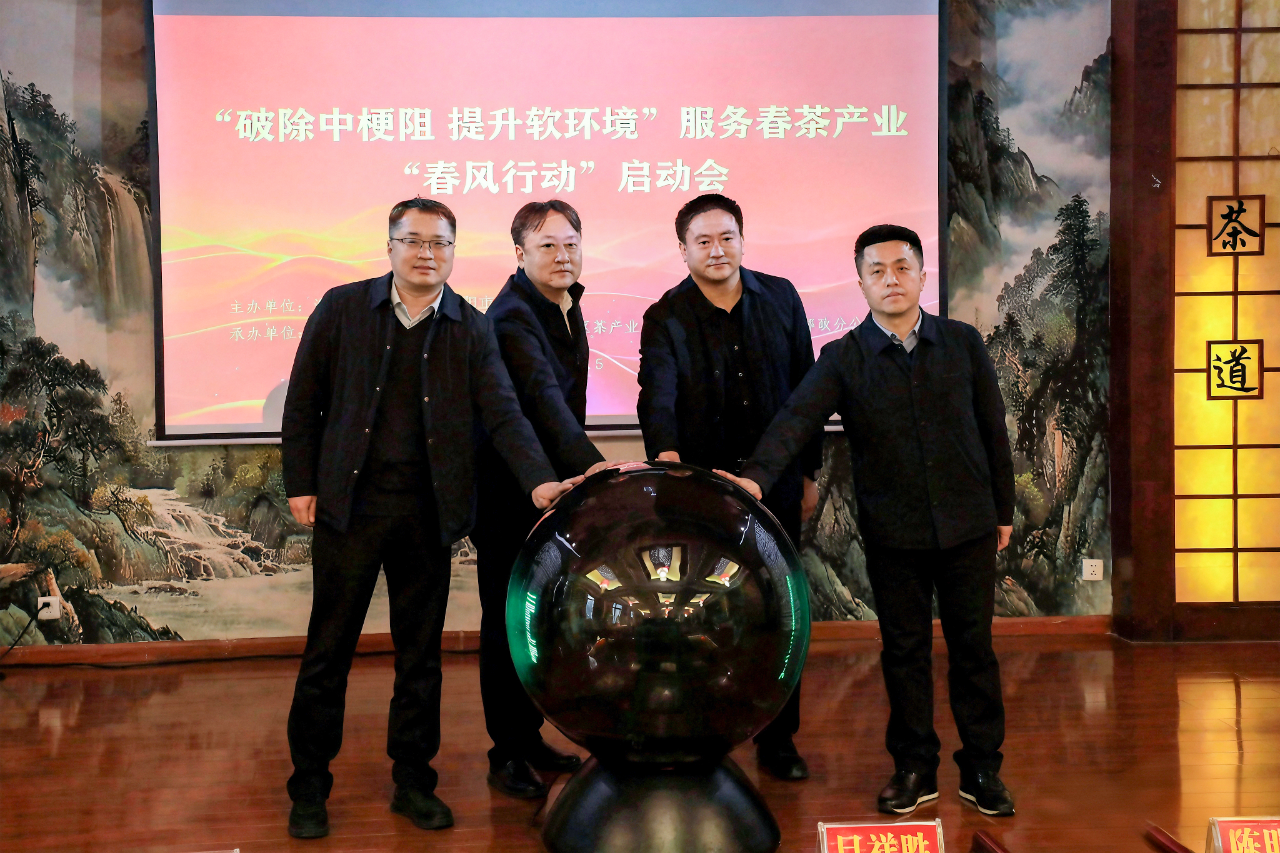 春雷惊蛰至,毛尖溢清香。3月5日,为助力春茶生产、振兴茶乡经济,由信阳市浉河区人民政府、市邮政分公司主办,浉河区邮政业和电商物流中心、浉河区茶产业发展中心、信阳市郊区邮政分公司承办的“破除中梗阻 提升软环境”服务春茶产业“春风行动”在董家河镇广义茶园启动。