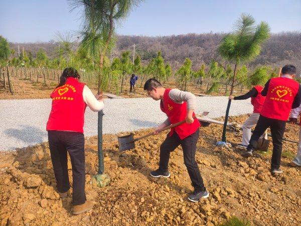 活动现场,大家三两一组、分工协作,挖坑、立树、填土、夯实、封坑、浇水,一气呵成,一棵棵小树落地生根。大家用汗水为春日大地增添一抹盎然新绿,展现出邮政队伍团结协作、奋勇争先的良好风貌。