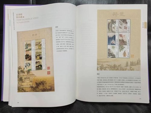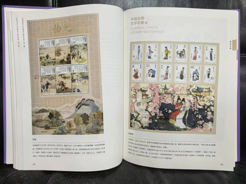 “邮票里的典籍”包括“从诗经到元曲”“中国古典文学名著”“中国古代文学家”等板块。通过一枚枚绚丽多彩的邮票,梳理中华优秀传统文化典籍的发展源流,犹如一扇扇通往书香世界的窗口,带领观展者一览千年文脉。